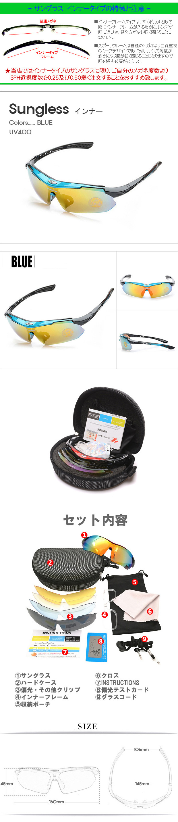 サングラス > 【激安メガネ通販】 偏光スポーツBLUE インナータイプ
