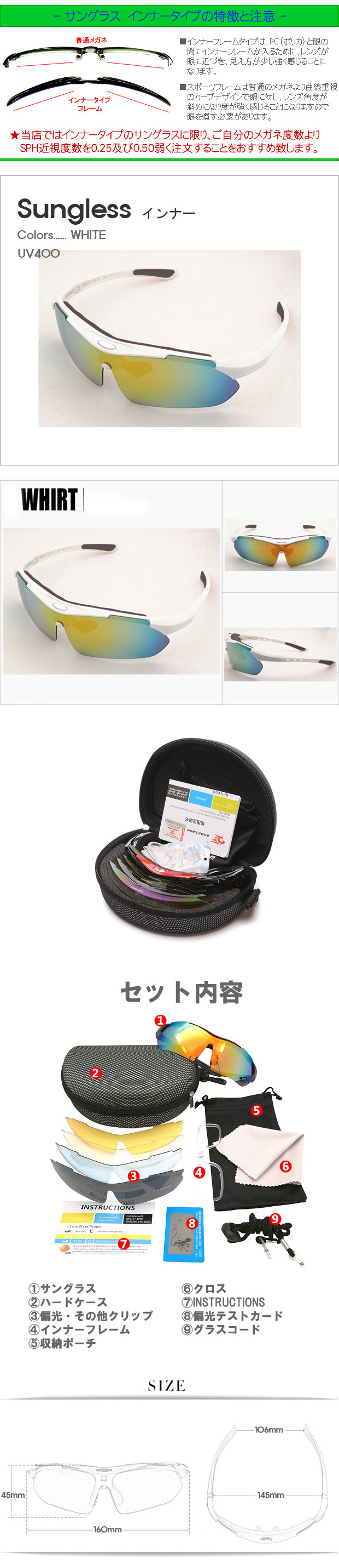 サングラス > 【激安メガネ通販】 偏光スポーツWHITE インナータイプ