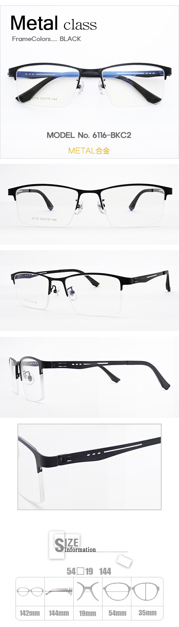 Metal クラス 眼鏡 > 6116 > 【激安メガネ通販】 Metalクラス 6116-BKC2