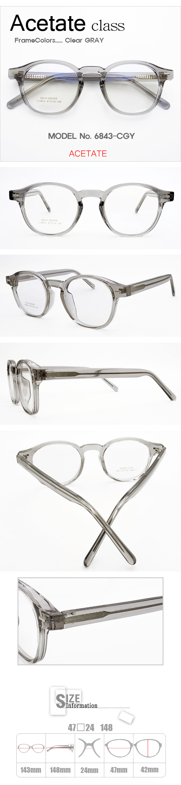 Acetate クラス 眼鏡 > 6843 > 【激安メガネ通販】 Acetateクラス 6843-CGY