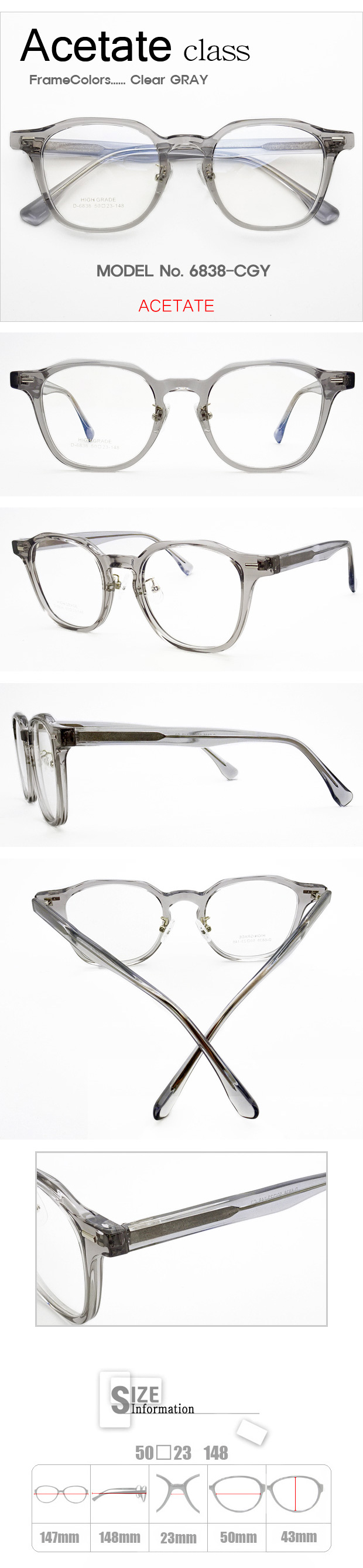 Acetate クラス 眼鏡 > 6838 > 【激安メガネ通販】 Acetateクラス 6838-CGY