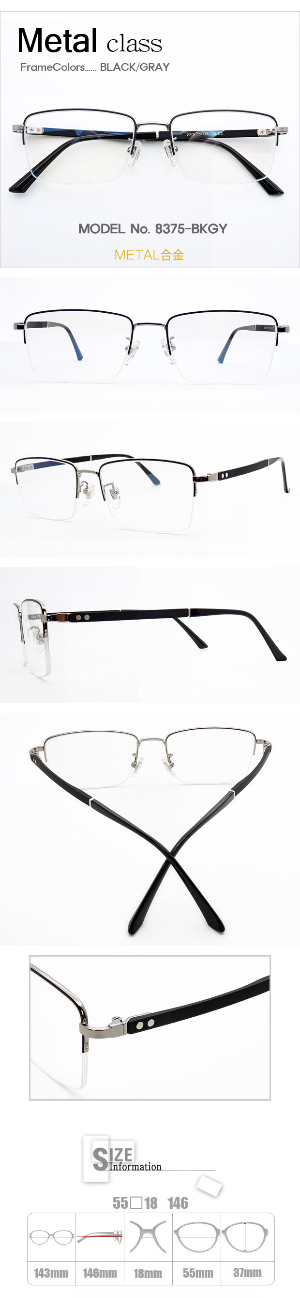 【激安メガネ通販】 Metalクラス 8375-BKGY