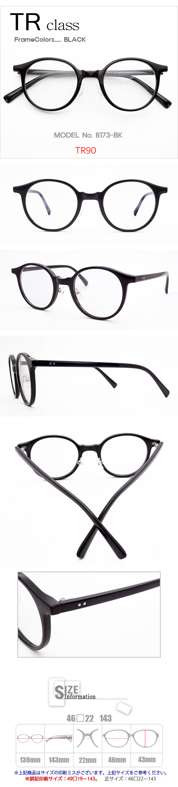 TR クラス 眼鏡 > 8173 > 【激安メガネ通販】 TRクラス 8173-BK